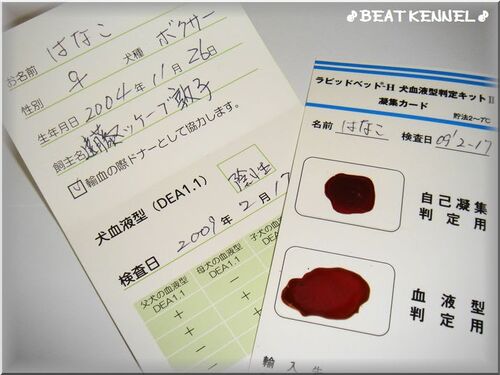 BEAT KENNELのお出迎え係、ボクサーのはなこちゃん 見た目はいかついけど実はとっても優しい女の子 せっかく体も大きいのだし、何か世間のお役に立てることがあれば~・・・という事で、血液型判定検査をしました 採血の時もじっとおすわりしていい子にして…