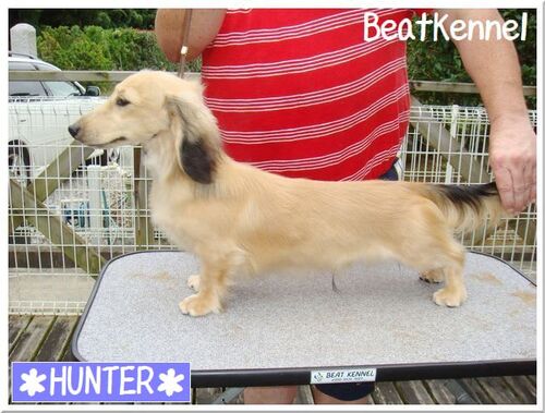 ミニチュアロングダックスフンド カナダチャンピオン CAN.CH BEAT JP'S SUPERNATURAL HUNTER (ビート ジェイピーズ スーパーナチュラル ハンター) 父:JKC.CH孫 さん太 母:JKC.CH 舞子 毛色:シェーデットクリーム 呼び名:ハンター【狩人】 2009.8.12 生…