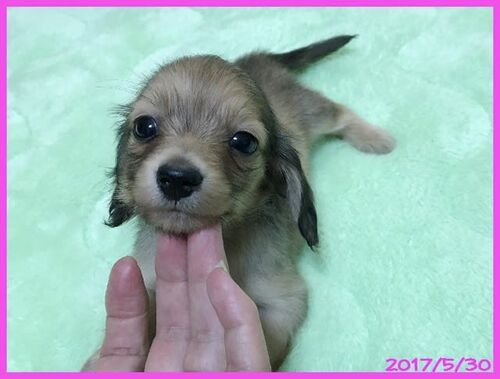 2017年4月14日うまれ カニンヘンロングダックスフンド 父:JKCチャンピオン ラパン 母:JKCチャンピオン アリエル (両親の名前をクリックするとそれぞれの紹介ページをリンクしています) 子犬 : シェーデットクリーム(シェーデットイエロー) 女の子 1…