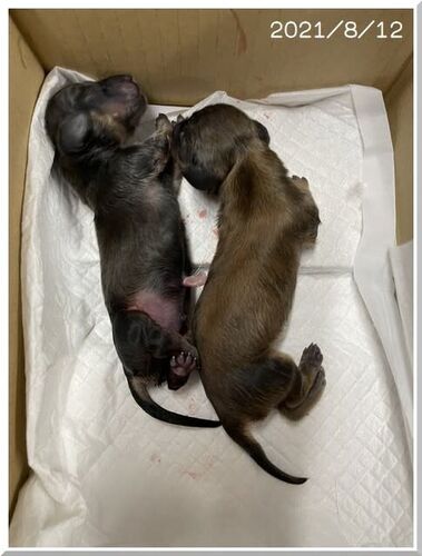 2021年8月12日うまれ カニンヘンロングダックスフンド 父:他犬舎様ご愛犬 母:JKCチャンピオン 星輝【キララ】 子犬:レッド 男の子 2頭 帝王切開で生まれました。元気にすくすくと育っています。 2021.9.2 レッドの男の子↓ レッドの男の子↓ 小さいほうの男…