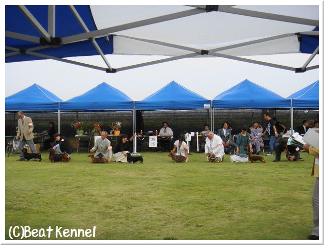 ミニチュアロングダックス、ミニチュアスムースダックス、カニンヘンロングダックスの3犬種が単独システム(40頭以上の出陳の場合のシステム)を組んでいました。