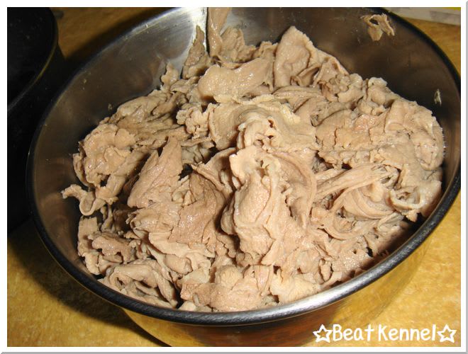 お疲れモードのわんこたちにもしゃぶしゃぶ用牛肉のお振舞い