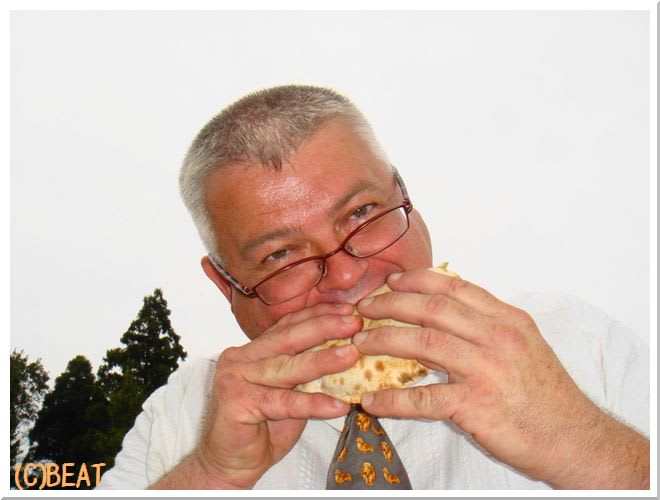 バートさんは夜まで待てずに運転中にいろいろとつまみ食い(私もですが、、、) 夜はビートカーのレンジで温めてご馳走になりました~