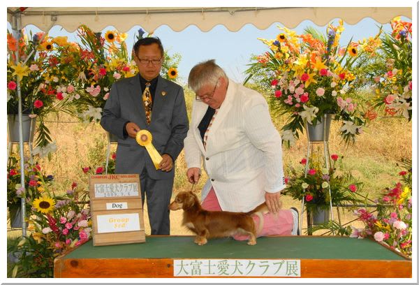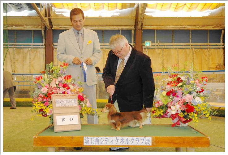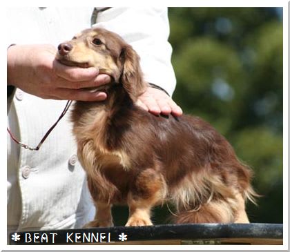 2009-01-06 JKCチャンピオン かーくん BEATハンドリングのCH達 カニンヘンロングダックスフンド JKCチャンピオン 父:JKC.CH ロミオ 母:JKC.CH みゅうみゅう 毛色:チョコレート&クリーム 呼び名:かーくん U様ご愛犬