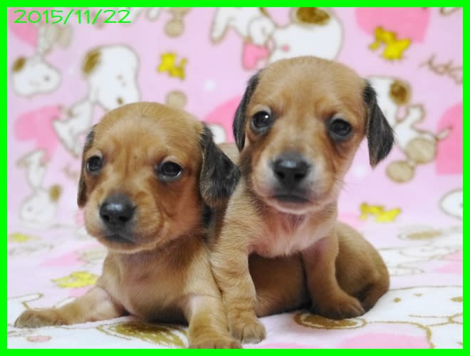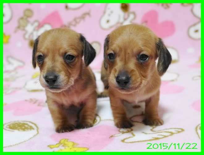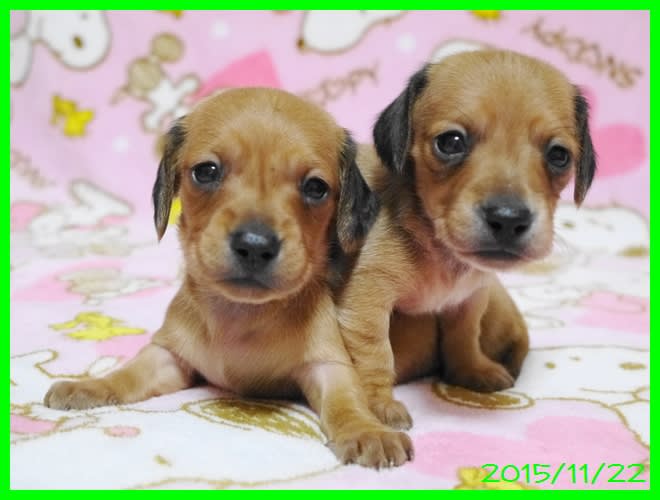 募集中の子犬は緑色の枠の写真で、2頭で写っている左側の小ぶりな子の方です。
