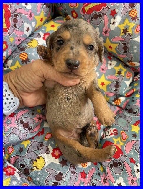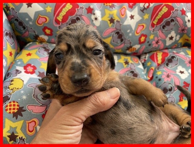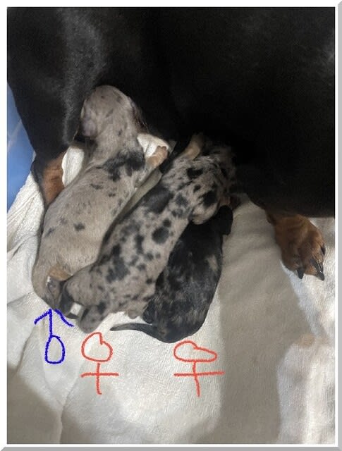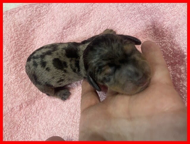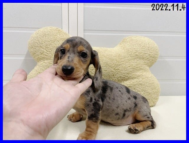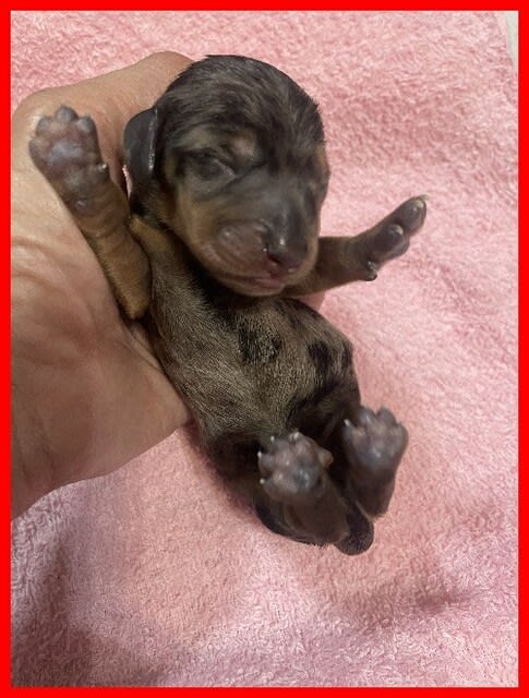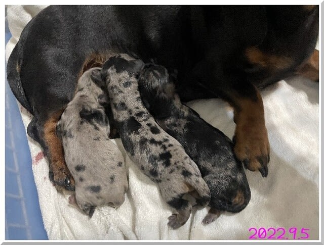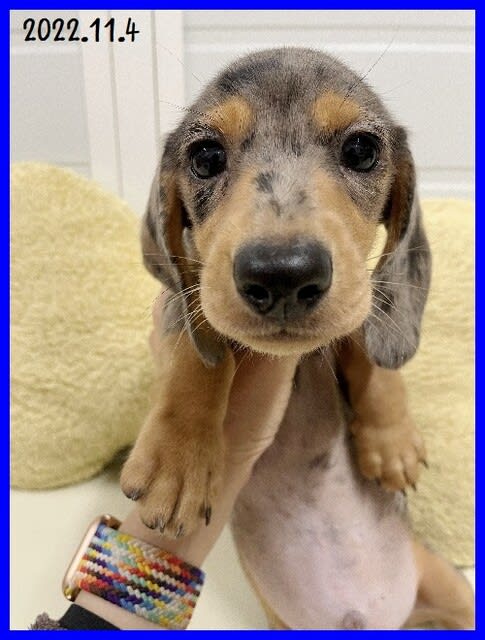 2022-10-07 カニンヘンスムースダックス( カエラの子 ) 巣立った子犬達2022 2022年9月5日うまれ カニンヘンスムースダックスフンド 父:JKCチャンピオン オーガスタ 母:JKCチャンピオン カエラ 子犬:シルバーダップル 男の子 1頭 シルバーダップル 女の子 2頭 2022.9.25 2022.11.4 シルバーダップルの男の子↓ ☆子犬さんたちは素敵なご縁がありました☆
