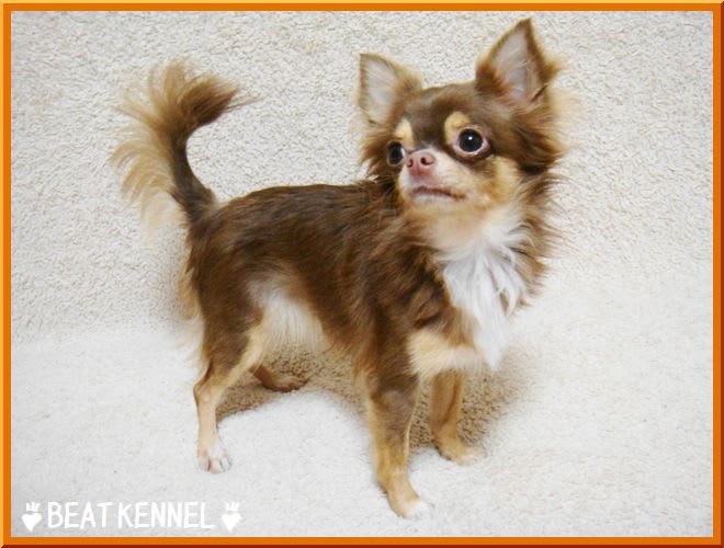 2009-11-09 シェリーちゃん 犬舎を支えてくれた引退犬 ロングコートチワワ 毛色:チョコレート&クリーム 呼び名:シェリー 体重1.8キロ。とてtもおとなしくて人懐こい性格の女の子です BEAT KENNEL 在舎犬 今後の出産予定はありません