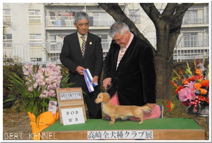 2010-11-28 JKCチャンピオン クレアちゃん BEATで生まれたCH達 カニンヘンロングダックスフンド JKCチャンピオン JKC.CH BEAT JP'S CREA (ビート ジェイピーズ クレア) 父:JKCチャンピオン シュート 母:AUST外産直娘 ぴっち 呼び名:クレア 毛色:クリーム(イエロー) U様 ご愛犬