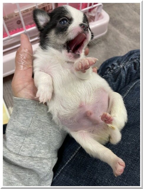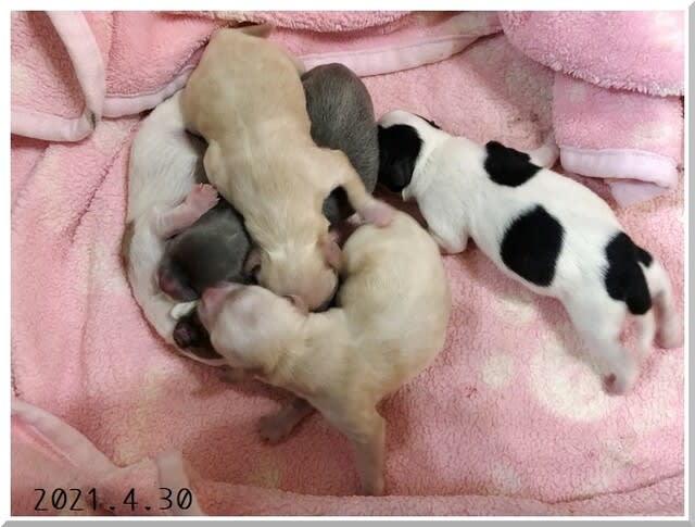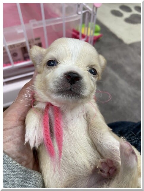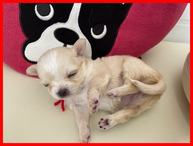 2021-05-04 ロングコートチワワ( ソフィアの子 ) 巣立った子犬達2021 2021年4月30日うまれ チワワ(毛質はロングもスムースも生まれる可能性があります) 父:アメリカチャンピオン直子 リアン(ロング) 母:JKCチャンピオン孫 ソフィア(スムース) 子犬:白黒パーティー 男の子 1頭 ブルー 女の子 1頭 クリーム 女の子 2頭 5.23 募集中のクリーム&ホワイトの女の子↓ ☆子犬さん達は素敵なご縁がありました☆