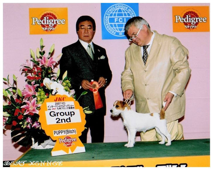 2007-09-17 JKCチャンピオン サフィラちゃん 別室:ジャックラッセルテリア ジャックラッセルテリア JKCチャンピオン 父:AUS.CH. GAYREGAL BAILEYS 母:JKC.CH. そら 呼び名:サフィラ 毛色:タン&ホワイト(ブロークン) N様ご愛犬