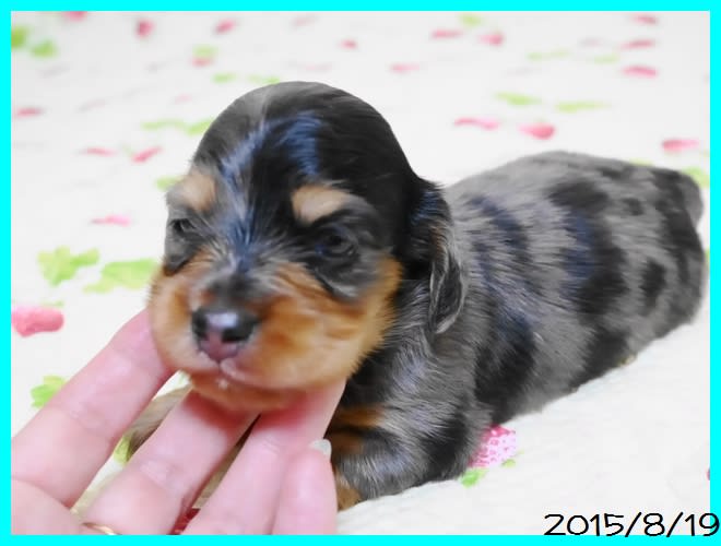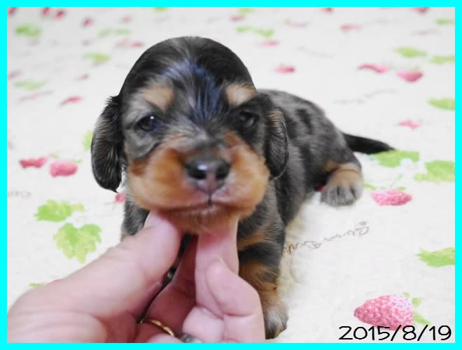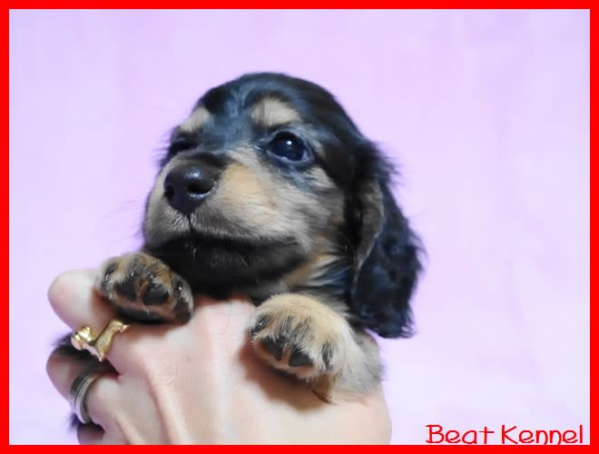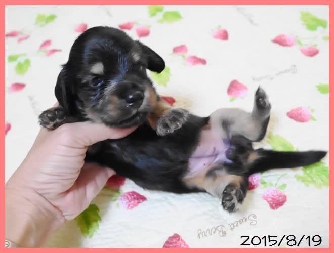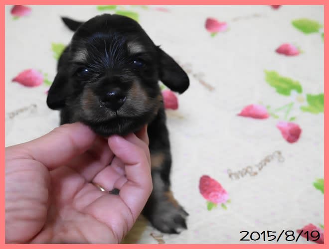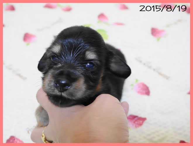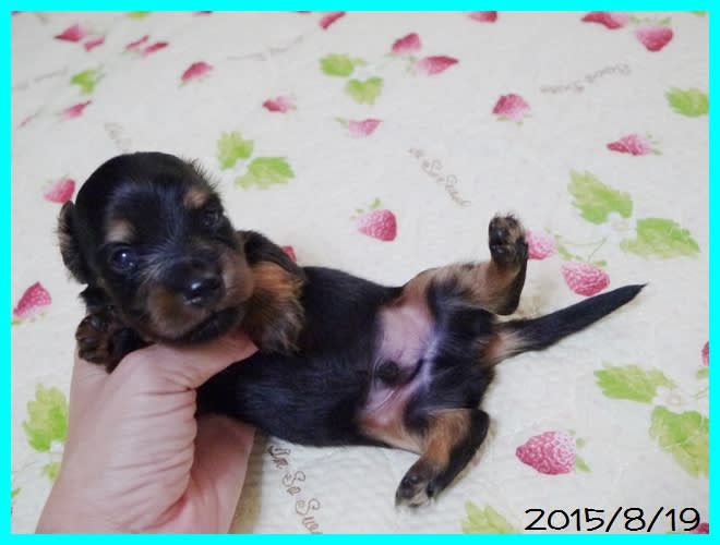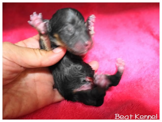 ブラック&タンの男の子↓3兄妹の中では一番ちびっこ君。