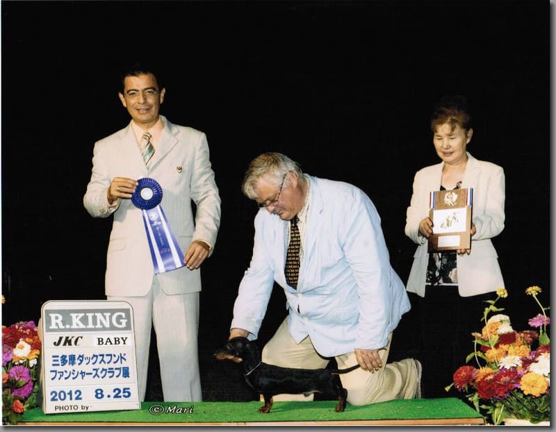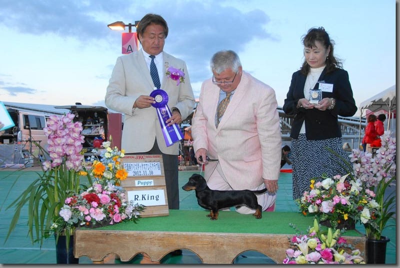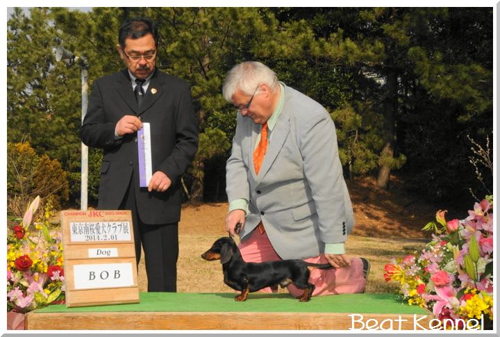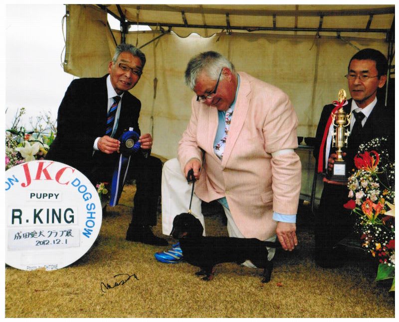 2013-09-22 JKCチャンピオン ヴィクター君 犬舎を支えてくれた引退犬 カニンヘンスムースダックスフンド JKCチャンピオン 呼び名:ヴィクター 毛色:ブラック&タン 真っ暗な上にわんこも黒いのでほとんど見えませんけど・・・・ 大人のクラスに上がっても頑張ります~ BEAT KENNEL 在舎犬