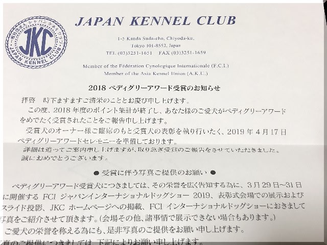 ビートケンネル生まれのちごちゃんが2018年度のぺディグリーアワードを受賞しました