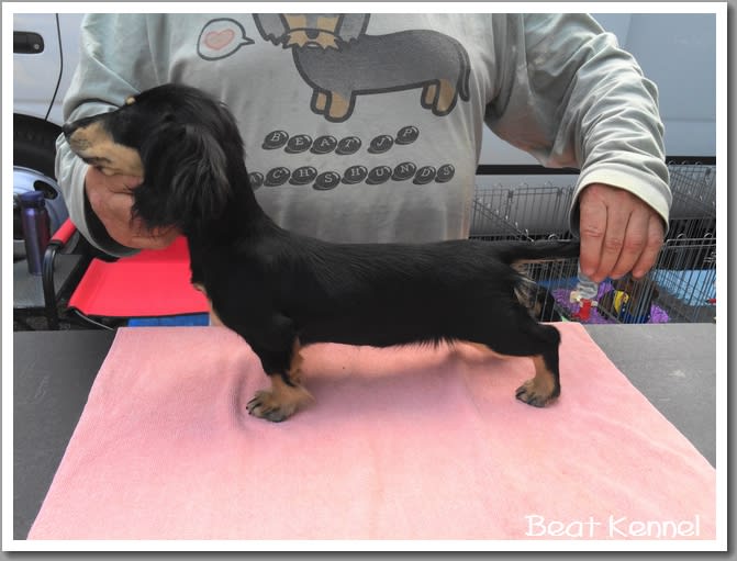 2016-03-03 JKCチャンピオン すずちゃん BEATで生まれたCH達 カニンヘンロングダックスフンド JKCチャンピオン JKC.CH BEAT JP'S CAN YOU CELEBRATE (ビート ジェイピーズ キャン ユー セレブレイト) 父:カナダチャンピオン&JKCチャンピオン しゅう太 母:JKCチャンピオン 歌姫【うたひめ】 呼び名:すず 毛色:ブラック&クリーム K様 ご愛犬