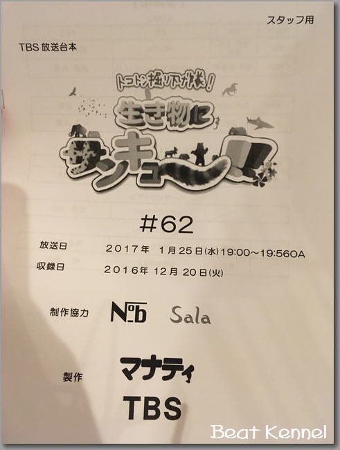 1月25日TBS『生き物にサンキュー』にビートケンネル生まれのわんこが出演します(全部がBEAT生まれではありません。)