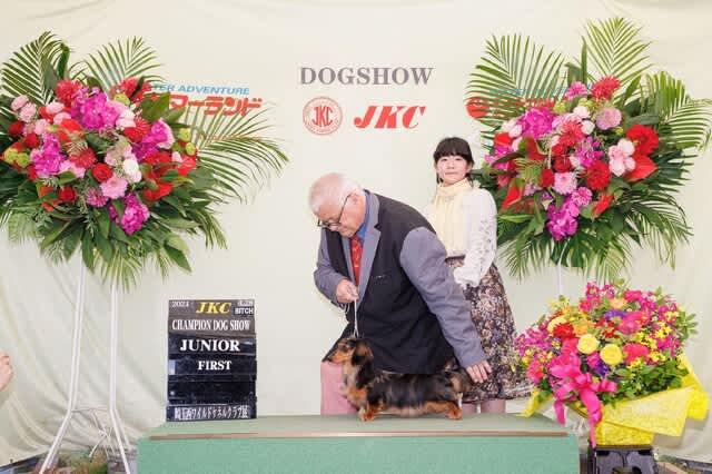 2024-11-06 J.チャンピオン マウマウちゃん BEATハンドリングのCH達 カニンヘンロングダックスフンド J.CH LOEWE JP'S M-ARTEMIS 父:JKCチャンピオン プラウド 母:JKCチャンピオン イデア 毛色:シルバーダップル 呼び名:マウマウ