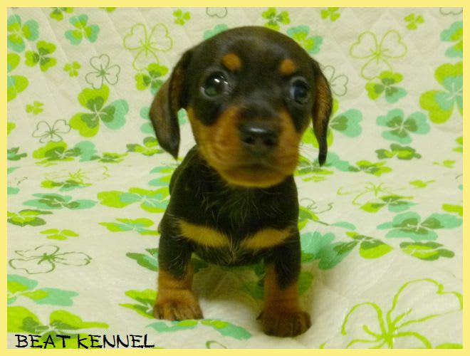 スムースヘアーの女の子↓ 毛色はブラック&タンです。