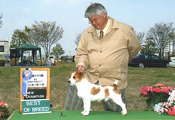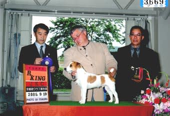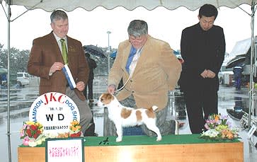 2006-02-07 JKCチャンピオン JACK君 別室:ジャックラッセルテリア ジャックラッセルテリア JKCチャンピオン 毛質:ブロークン 毛色:タン&ホワイト 呼び名:ジャック君(ジャックン) パピークラスからショーチャレンジをはじめてジュニアクラスにてチャンピオン完成いたしました。 Sさまご愛犬。