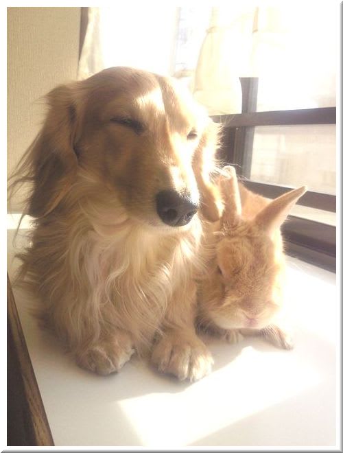 うさぎちゃんとうとうとひなたぼっこしているお顔がとっても幸せそうですね・・・