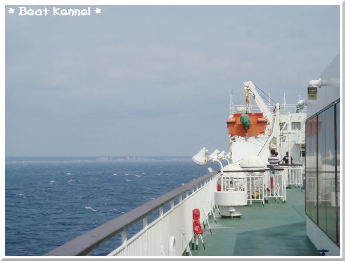 翌日土曜日の苫小牧港への着岸は予定より約1時間遅れ。お天気がよかったので、今回初めてデッキにでてみた お!彼方に見えるのは北海道~~~