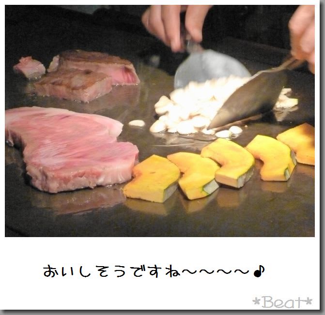 ここもバートさんと二人では何度か来ているけど、家族全員では初めて。鉄板焼きなので、通常はカウンター席に座って目の前で焼いてくれるのだが、椅子が作り付けで父には無理だったので、テーブル席にしました。